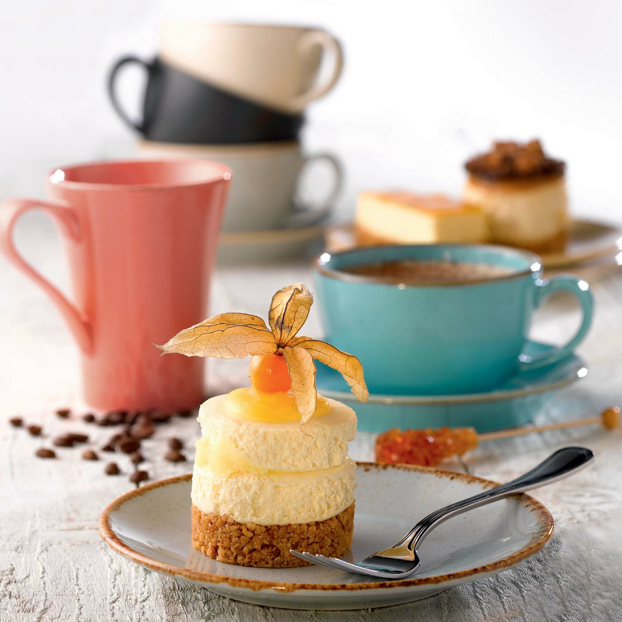 Kolekcja Seasons, inspirowana japońską filozofią Wabi-Sabi, podkreśla piękno niedoskonałości i naturalność upływającego czasu. W procesie produkcji zastosowano reaktywne szkliwo, które nadaje każdemu produktowi indywidualny charakter i niepowtarzalny efekt wizualny. Dzięki ręcznemu zdobieniu brzegów każdy element kolekcji jest unikatowy. Linia Laguna wyróżnia się kolorem błękitny niebieski, który harmonijnie łączy się z pozostałymi odcieniami kolekcji, tworząc spójną i elegancką całość.