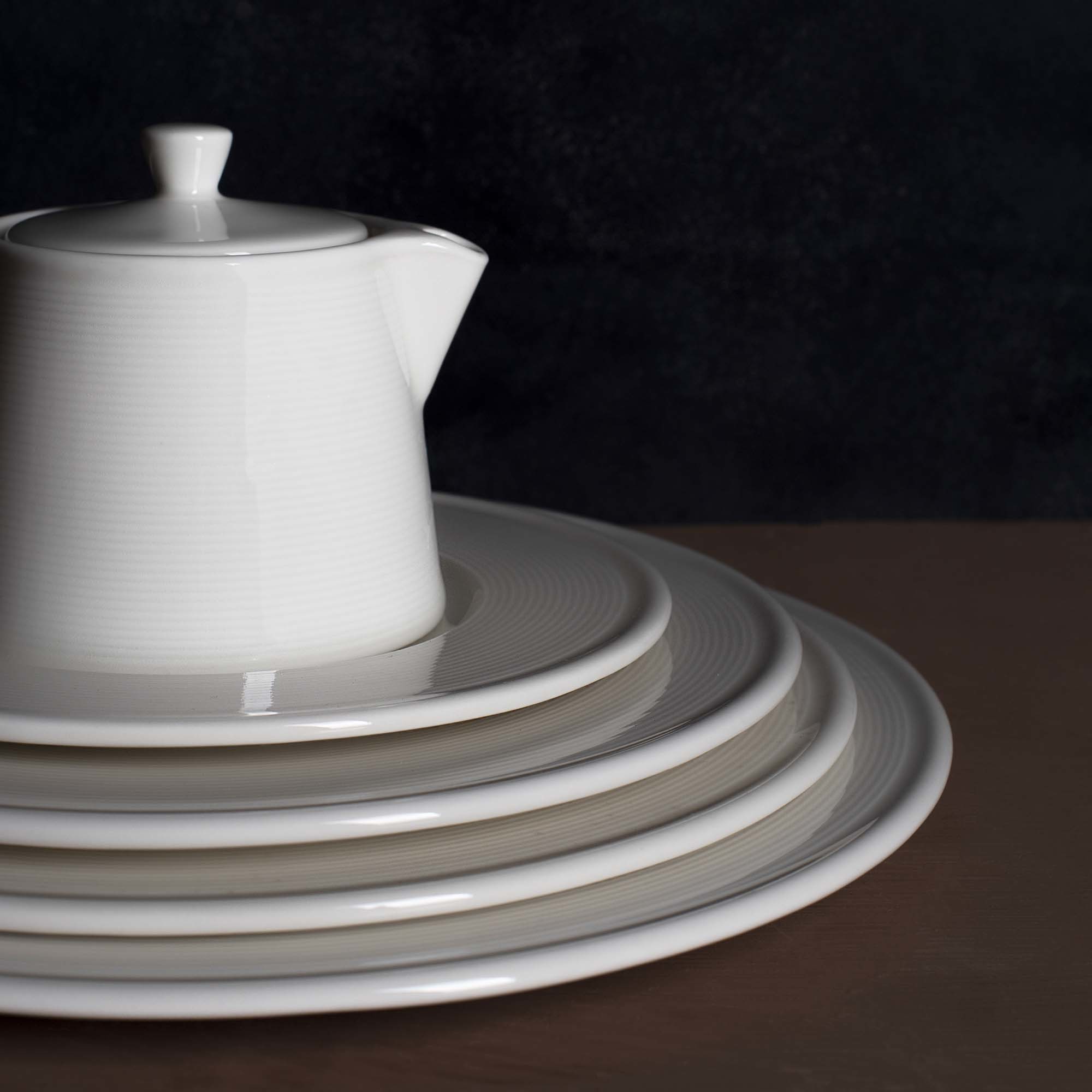 Kolekcja Line, o kremowo-białym kolorze, łączy proste wzornictwo z delikatnie karbowanym rantem. Mnogość produktów oraz wykonanie z porcelany najwyższej próby sprawia, że jest to idealny wybór na atrakcyjne bankiety.