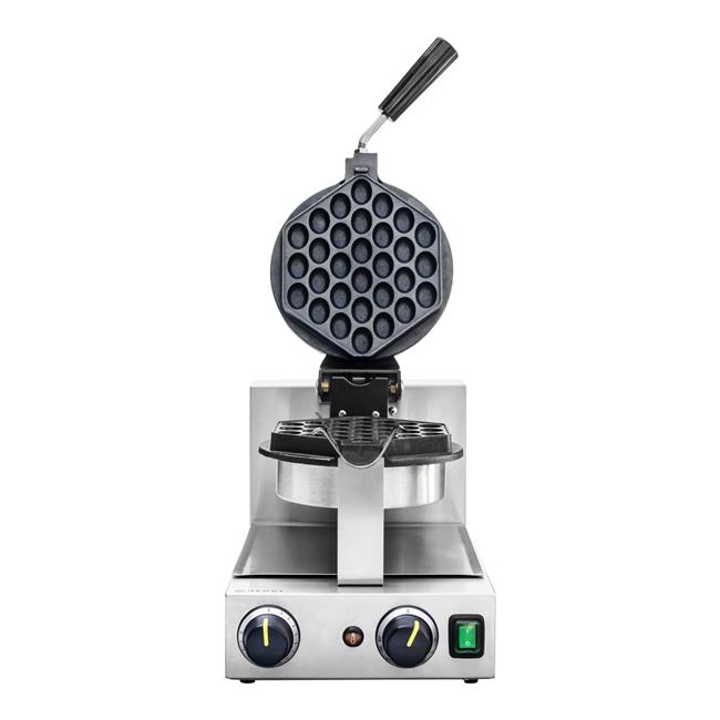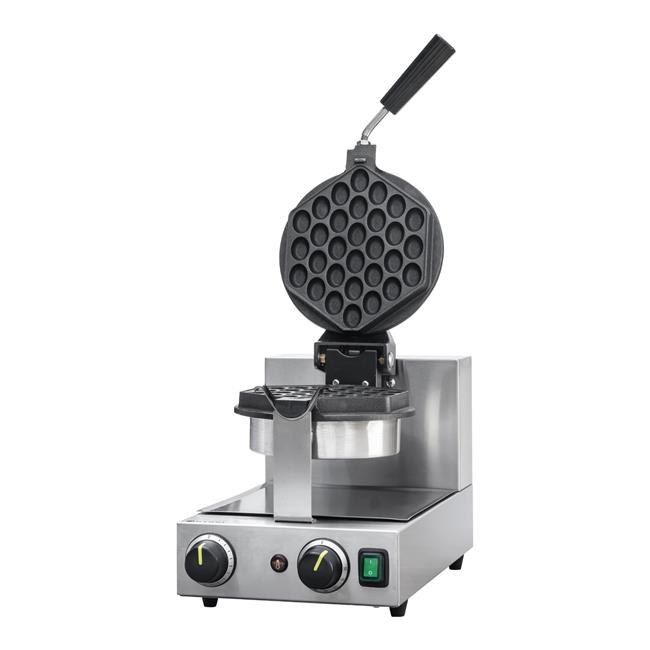 Gofrownica obrotowa do gofrów Bubble Waffle firmy HENDI dzięki płytom z powłoką nieprzywierającą i funkcji obracania zapewnia równomierne rozprowadzanie ciasta, a dzięki temu równomierne opiekanie gofra. Opatentowana powłoka nieprzywierająca Teflon pozwala łatwo zdejmować gotowe, idealnie chrupiące gofry. Z pomocą tej gofrownicy z łatwością można przyrządzić do 20 gofrów na godzinę.