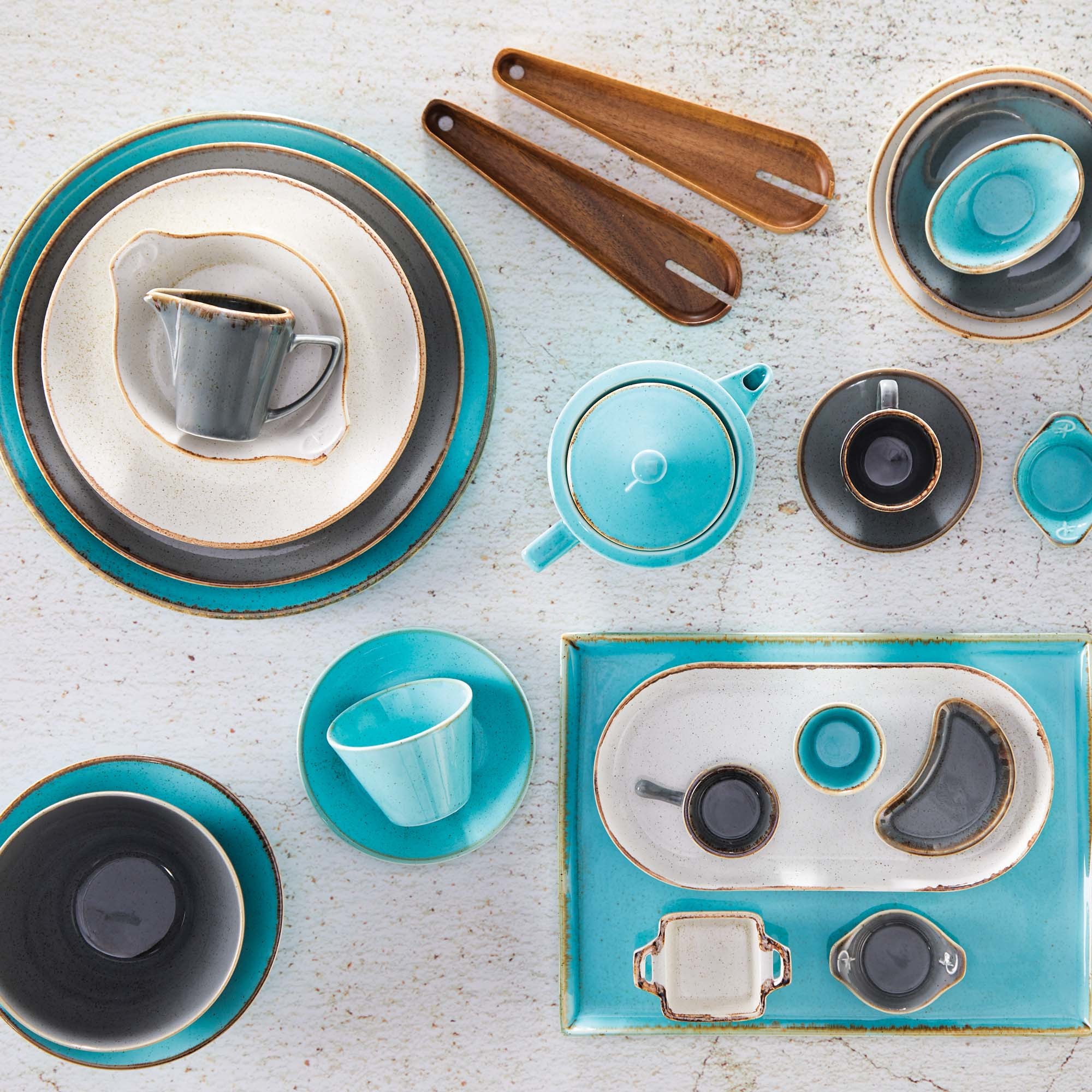 Do barwienia produktów kolekcji Seasons Sand wykorzystywane są naturalne barwniki, tlenki żelaza oraz rzemieślnicze techniki. Proces ten sprawia, że każdy element może reagować inaczej podczas wypalania i szkliwienia, co prowadzi do różnic w fakturze, tonacji i kolorze. Nie są to wady, lecz cechy wynikające z ręcznej produkcji i użycia naturalnych materiałów. Do mieszanki szkliwa dodawany jest cyrkon, aby uzyskać pożądany odcień koloru oraz zwiększyć twardość powierzchni szkliwa. Ze względu na tę zwiększoną twardość, podczas używania metalowych sztućców, takich jak widelce czy noże, mogą pojawić się ślady. Nie świadczy to o obniżonej jakości produktu, lecz jest związane z technicznymi właściwościami porcelany. Ślady te można usuwać średnio co pół roku, stosując odpowiedni środek do czyszczenia powierzchni porcelany.