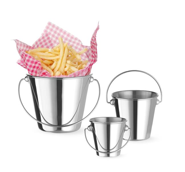 Wiaderko z uchwytem miniaturowe do przekąsek HENDI to praktyczne akcesorium do serwowania przekąsek zaprojektowane z myślą o profesjonalnych lokalach gastronomicznych Kompaktowy rozmiar sprawia, że idealnie nadaje się do serwowania wszelkiego rodzaju przekąsek, a poręczny uchwyt ułatwia przenoszenie. Wykonane ze stali nierdzewnej, zapewniającej trwałość i łatwe czyszczenie.